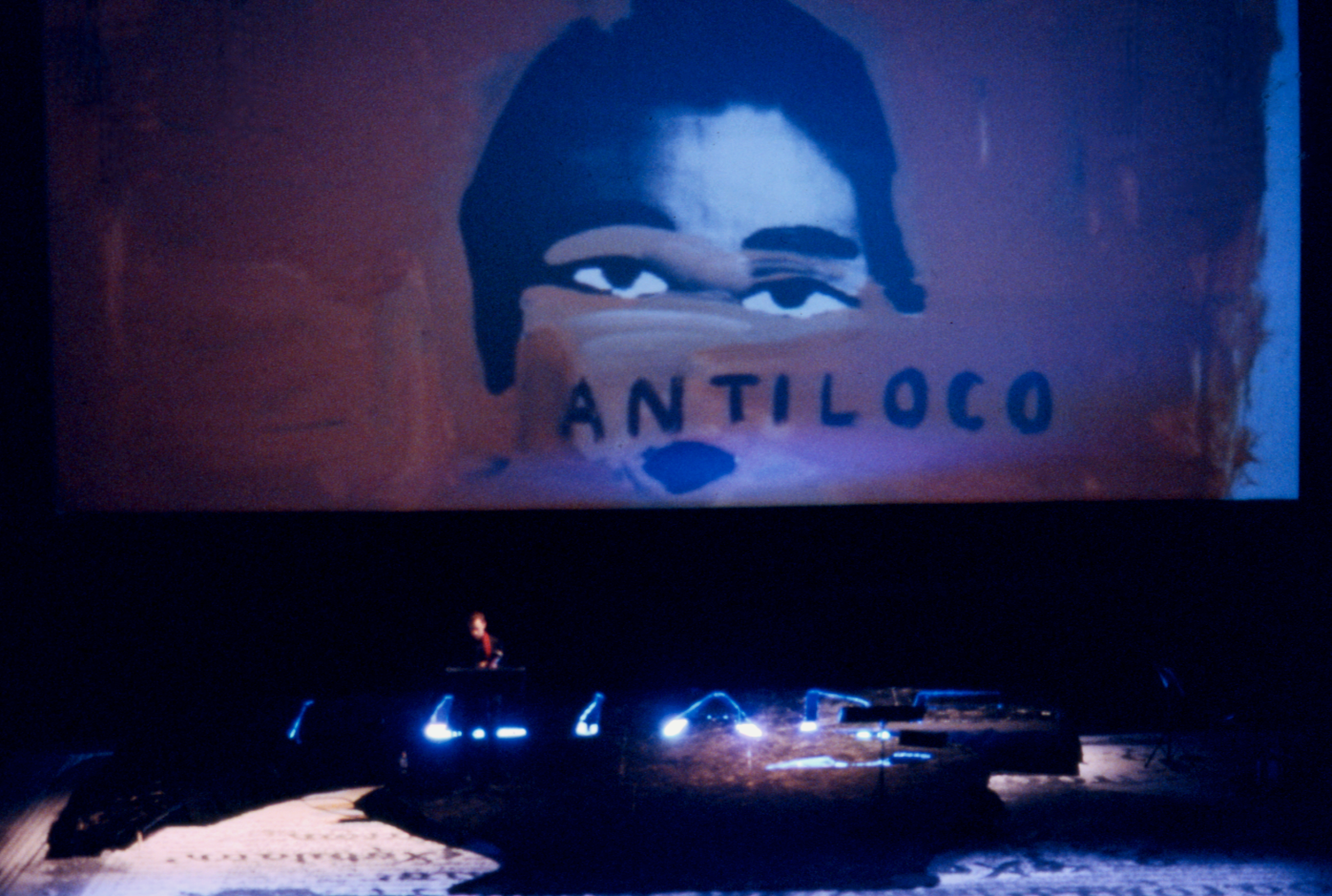 La voce plasma lo spazio, crea immagini, risuona in sala potentemente, amplificata dal microfono, e lo spettacolo avvicinandosi alla forma concerto ha nascoste le potenzialità di un rito – emozione collettiva.