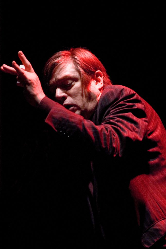 L’anima profondamente sonora della Socìetas Raffaello Sanzio spinge Chiara Guidi a intrecciare la sua ricerca sulla voce molecolare alla musica di Teho Teardo, e a condividere la scena con il violinista Alexander Balanescu e il cantante attore Blixa Bargeld, già intenso solista della band Einstürzende Neubauten, musicista e voce con Nick Cave and the Bad Seeds. In Ingiuria risuonano le origini di una parola antica, che affonda le radici in quelle società arcaiche dove l’offesa era collegata anche alle “formule imprecatorie”, parte dell’universo sapienzale della Bibbia, fino risuonare nell’invettiva violenta ritrovata fra gli appunti di un attentatore dell’11 settembre. E come spesso accade in queste formule rituali, suono, ritmo e intonazione della voce hanno più importanza del senso delle parole stesse. Il lavoro creativo di Guidi e Teardo su una selezione di testi di Claudia Castellucci punta con decisione a esaltare l’aspetto fisico della voce, il suo dispiegamento e il suo potere incantatorio. Per farne teatro nasce così una base registrata e attraversata dalla voce della stessa Guidi, mentre Balanescu e Bargeld intervengono dal vivo. Artista dalla formazione classica ma dall’orientamento poliedrico, Balanescu ha suonato con un quartetto d’archi votato alla musica contemporanea come l’Arditti, non si è negato a jazzisti come Carla Bley o John Lourie, ha partecipato a progetti di gruppi come i Pet Shop Boys o la Yellow Magic Orchestra. Graffiante e struggente, il suo violino farà coppia con la voce intensa e possente di Bargeld, cantante e artista tedesco guida degli Einstürzende Neubauten, gruppo dell’industrial, un rock rumoristico e situazionista non estraneo al dada e alla performance. La voce come strumento martellante, per polverizzare e trasfigurare le parole fino a scagliarne le sillabe dalla glottide per colpire: una trama sonora spessa e incisiva, dove la voce trasfigurata si unisce oniricamente alle corde vibranti del violino. Una drammaturgia del suono dove la capacità di pensare con le orecchie architetture e grumi sonori diventa predominante, come nel recente Madrigale appena narrabile ancora una volta firmato da Guidi, una delle fondatrici e delle voci più stimolanti della Socìetas Raffaello Sanzio.