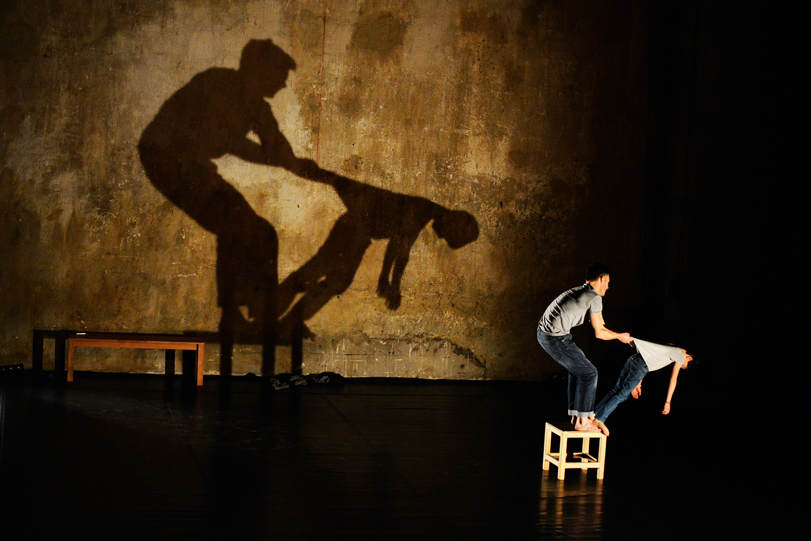 Delicato duo per padre e figlio, questa pièce è costruita sul dialogo e sull’equilibrio instaurato tra il corpo e il peso di un bambino e quello di suo padre. Un tenero gioco d’improvvisazioni volto ad indagare in termini poetici l’identità paterna ma anche due età differenti del corpo maschile.