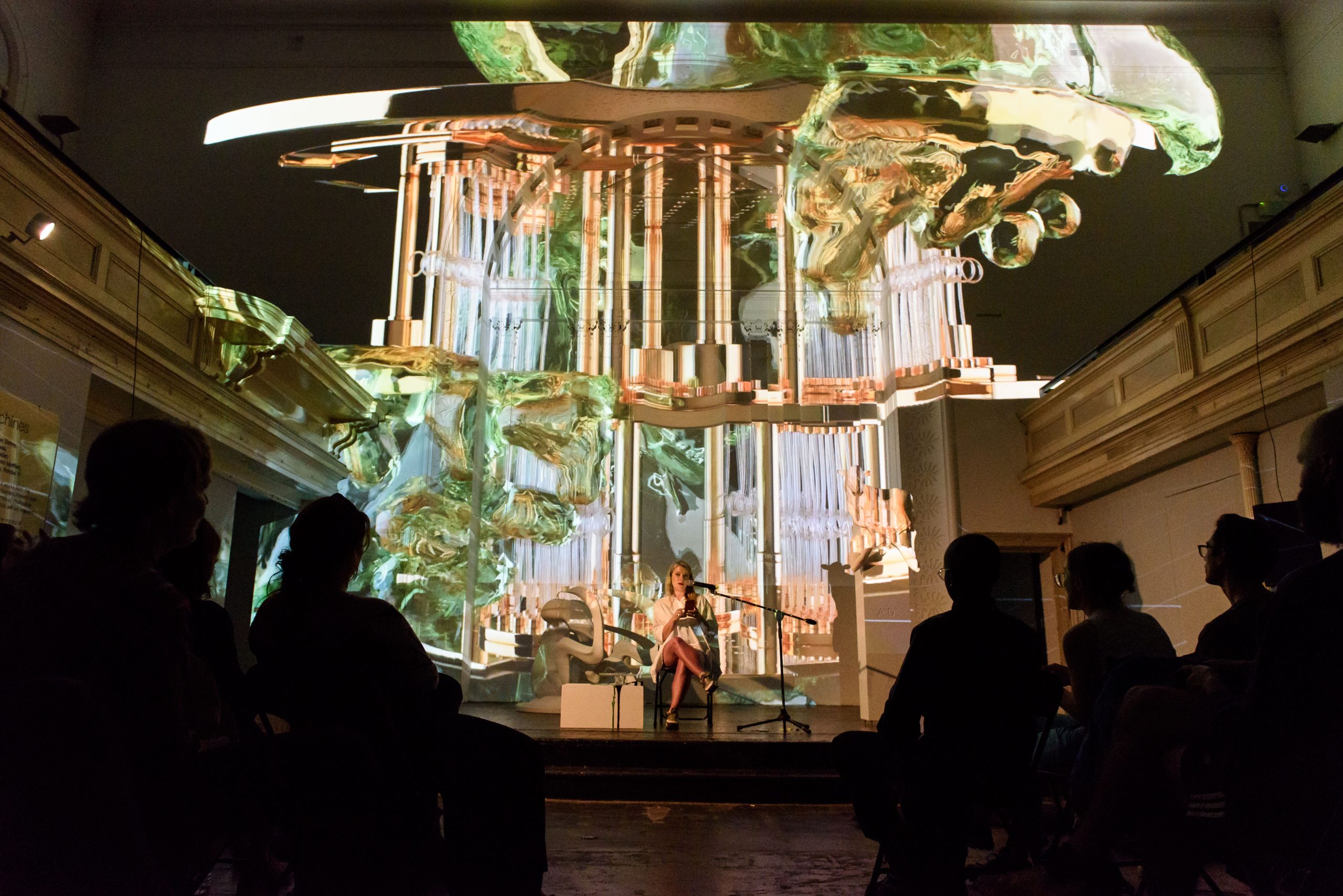 L’artista e fisica quantistica Libby Heaney presenterà slimeQore, un montaggio video immersivo e una narrativa parlata che utilizza la melma come metafora del mondo quantistico sfocato e scivoloso e anche delle società “viscide” che sviluppano la tecnologia quantistica attraverso interfacce simili alla melma.