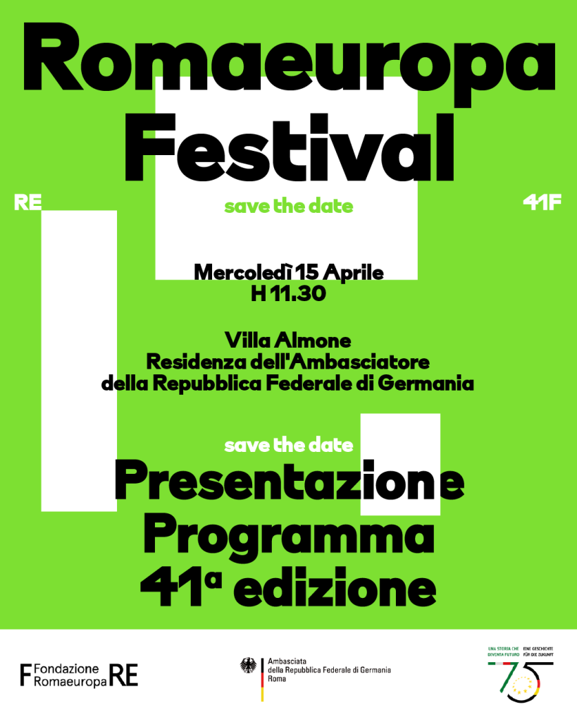 Das Romaeuropa Festival kann wieder starten! Wir freuen uns, Sie zur Pressekonferenz anlässlich der Eröffnung der 41. Ausgabe des Festivals am Mittwoch, den 15. April, in Rom begrüßen zu dürfen.