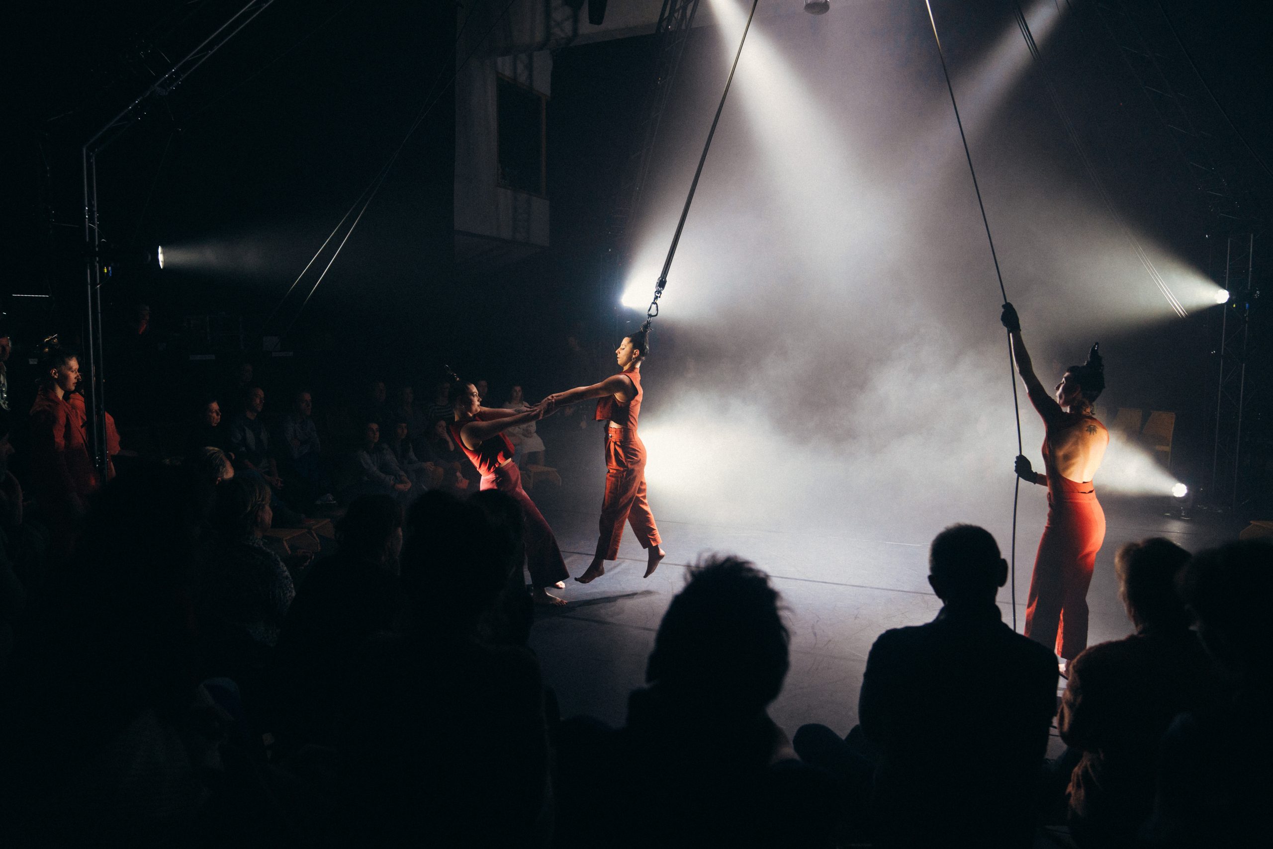 Acrobate specializzate nella sospensione dai capelli: Lia Vilão, Nur Cimenci, Marta Camuffi