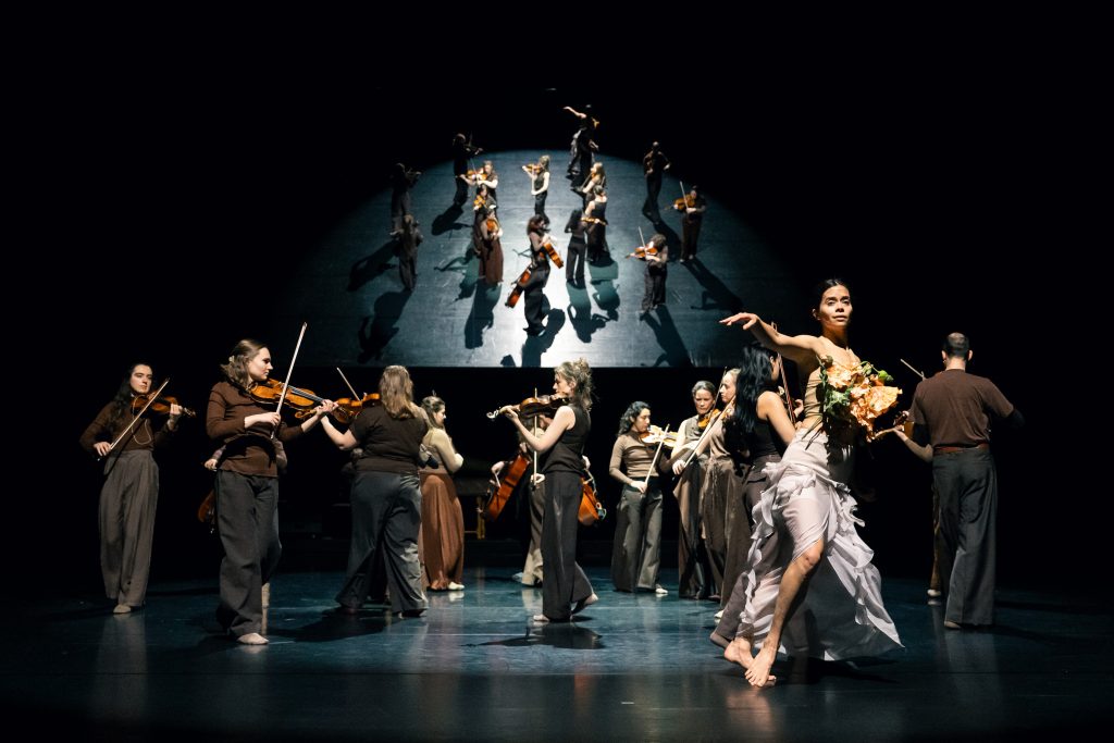 Come le stagioni cambiano e ritornano, anche i classici possono trasformarsi attraverso nuove letture. In questo concerto coreografico i confini tra musica e danza si dissolvono, aggiungendo un nuovo livello alla celebre reinterpretazione che Max Richter ha realizzato nel 2012 de Le Quattro Stagioni di Vivaldi: una partitura che non riscrive l’originale, ma lo attraversa, lo frammenta e lo ricompone, amplificando la percezione del tempo e della memoria. La musica viene eseguita interamente a memoria dai musicisti di BRYGGEN, guidati dalla violinista Jolente De Maeyer, che si muovono nello spazio scenico come un organismo collettivo, in traiettorie continue e ipnotiche. Tra loro si inserisce un danzatore solitario, in dialogo costante con la musica: a volte la contraddice, a volte la spinge verso nuove intensità. Il coreografo Michiel Vandevelde traduce in movimento la logica compositiva di Richter, che costruisce un ponte tra barocco e contemporaneo, tra ripetizione e variazione, tra struttura e trance. Ogni stagione si lega a una genealogia della danza (da Isadora Duncan a Pina Bausch), mentre prologo ed epilogo elettronici di Didem Coskunseven incorniciano il ciclo come un rituale di nascita, morte e rinascita. Ne emerge un’esperienza immersiva che reinventa il concerto come spazio vivo, fisico e in continua mutazione.