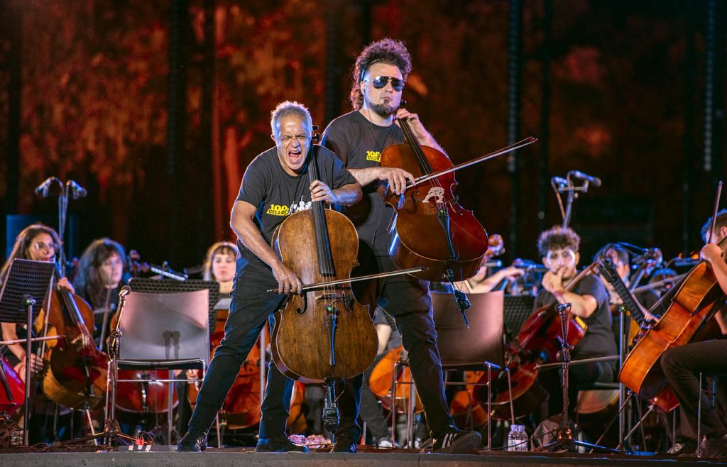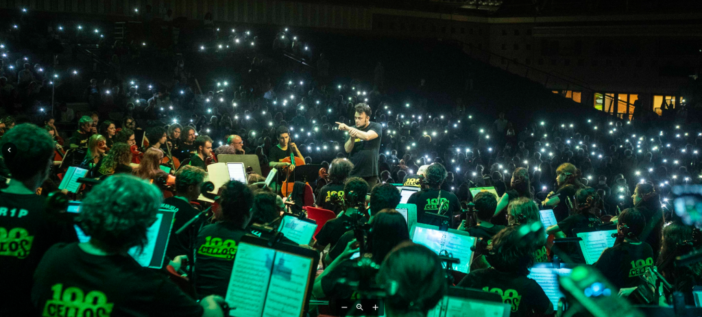 I 100 Cellos nascono nel 2012 al Teatro Valle Occupato dall’incontro tra Enrico Melozzi e Giovanni Sollima. Da quell’innesco si sviluppa un percorso fuori scala: dal Concertone del Primo Maggio a Piazza San Giovanni davanti a centinaia di migliaia di persone, fino a tournée internazionali tra Dubai, Tokyo, Osaka, Budapest, Madrid. Presenze nei luoghi simbolo, dal Teatro alla Scala al Teatro Greco di Taormina, passando per l’Auditorium Parco della Musica. Un ensemble ormai identificato a livello globale per la sua capacità di ridefinire il linguaggio del violoncello.