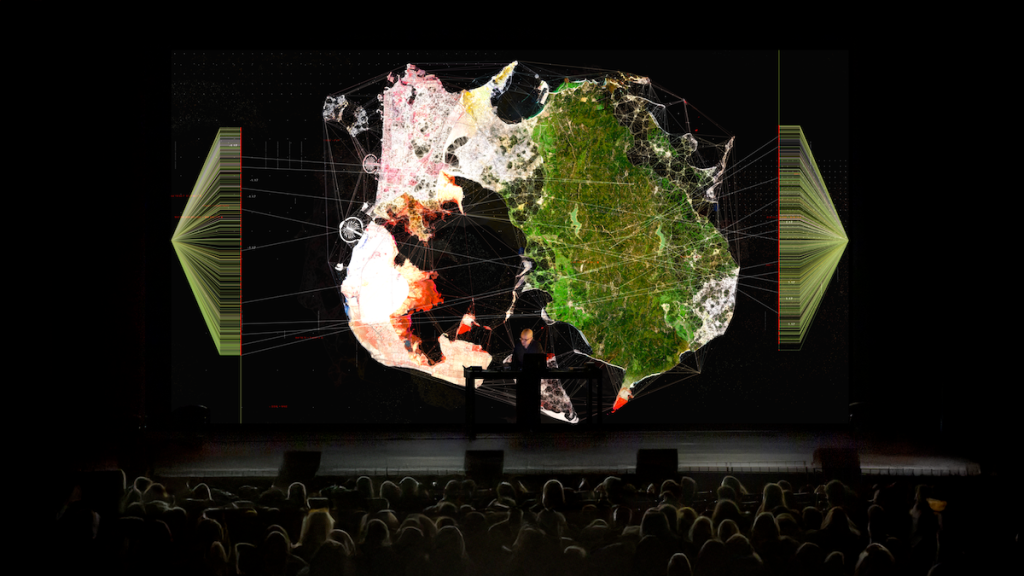 H U M I è una performance audiovisiva immersiva che indaga il concetto di confine non come linea di separazione, ma come soglia mobile, porosa, instabile: un campo di relazione in cui territori, forme e identità si contaminano fino a perdere i propri contorni. Attraverso campionamenti ad alta definizione di regioni remote della Terra, sottoposti a processi di rigenerazione guidati dall’intelligenza artificiale, il lavoro costruisce una geografia in continua metamorfosi: superfici aride che si liquefanno, coste che si spezzano e si sovrappongono, trame urbane che si dissolvono in materia pulsante. Il paesaggio non viene rappresentato, ma continuamente riscritto.Artista visivo e multimediale, fisico e docente universitario, Riccardo Giovinettoattraversa performance audiovisive, installazioni immersive e composizione contemporanea, esplorando il dialogo in continua evoluzione tra suono, immagine e strutture algoritmiche.